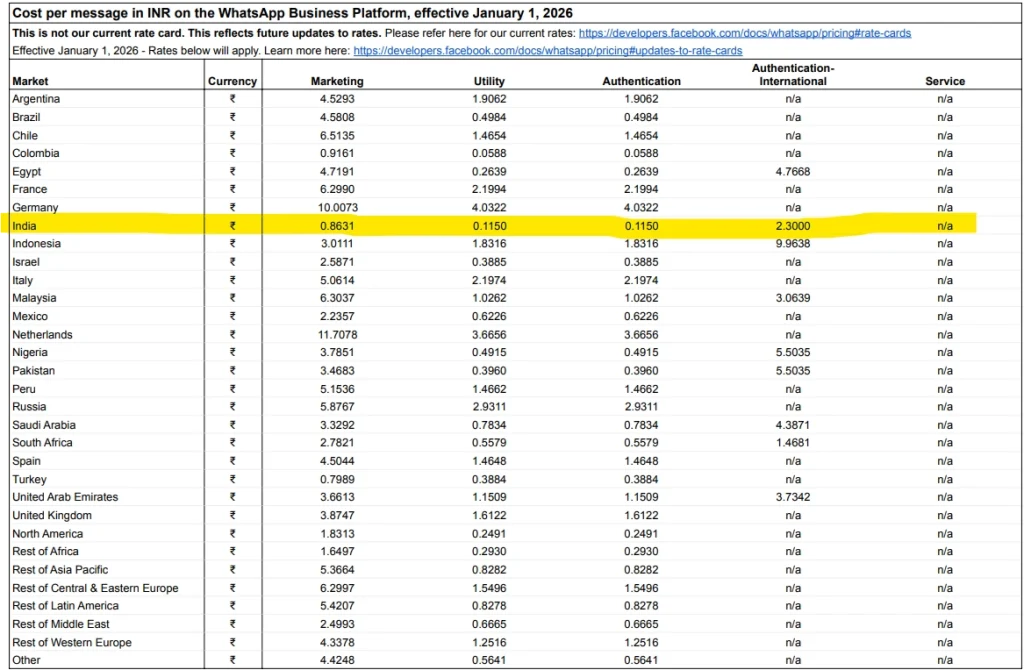 In recent updates from META, there’s an important announcement for businesses using WhatsApp for marketing. Effective January 1, 2026, there will be a change in the pricing structure for WhatsApp Marketing Templates in India.